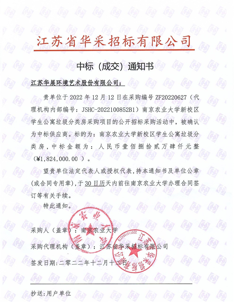 【中標(biāo)通知】南京農(nóng)業(yè)大學(xué)新校區(qū)學(xué)生公寓垃圾分類房采購項目